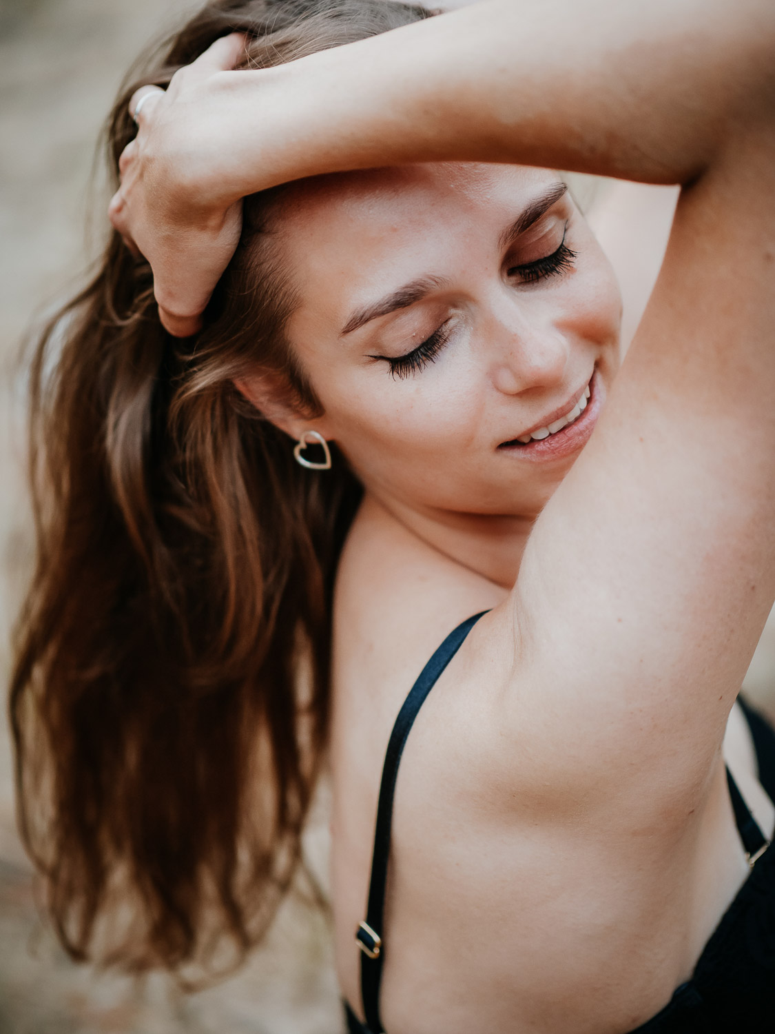 Du musst keine Erfahrung im Posen haben oder wissen, wie du vor der Kamera am besten aussiehst. Ich werde dir jeden Schritt erklären und dich einfühlsam anleiten, damit du dich entspannen, vor der Kamera wohlfühlen und die Zeit genießen kannst.